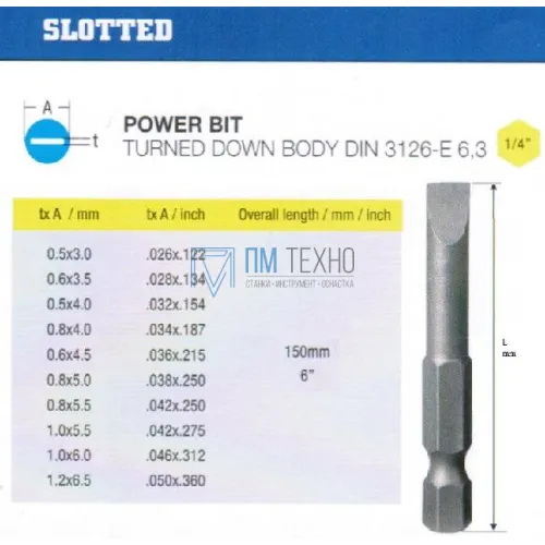 ОформитьБиты шлицевые SL 3,0х0,5х150мм CrV DIN3126 хв-к Е1/4 "CNIC"