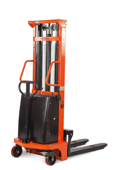 - Электрический привод подъема и спуска вил сокращает время обработки грузов за счет высокой скорости работы, в отличие от ручных штабелеров, так же это значительно снижает нагрузку на оператора.