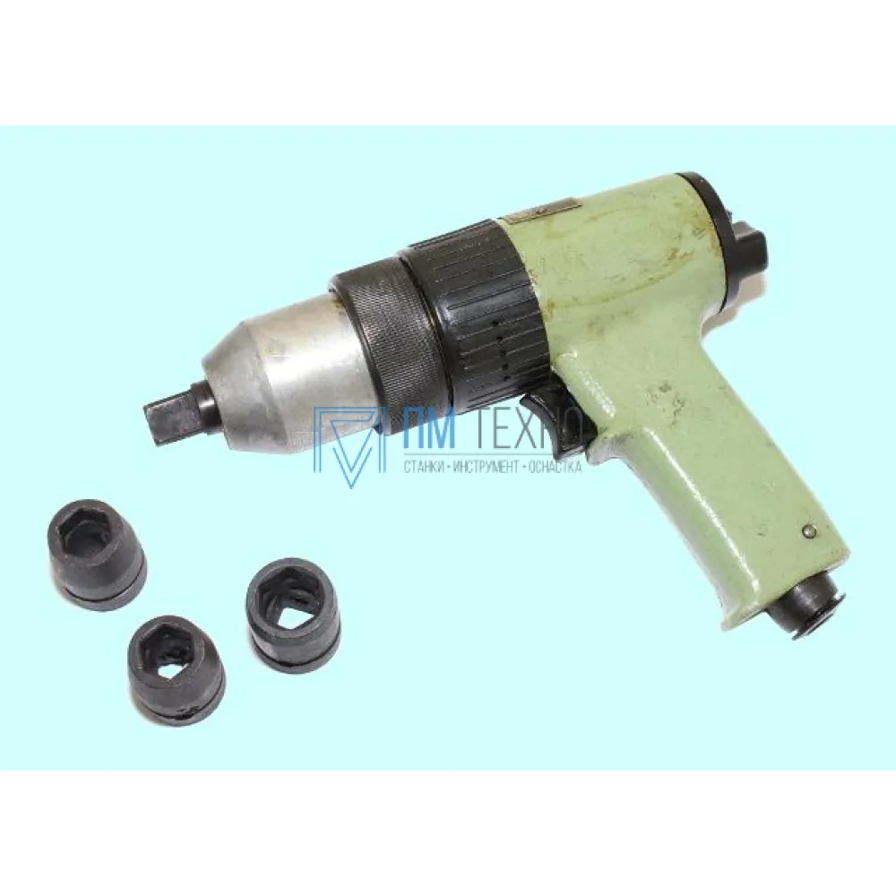 Технические характеристики: Максимальный диаметр затягиваемой резьбы, мм - 12; Момент затяжки, Н.м - 63; Расход сжатого воздуха при затяжке, м3/мин - 0.7; Давление сжатого воздуха на входе, МПа - 0.5; Габаритные размеры, мм - 220х50х170: Масса (без сменной головки), кг - 2.0