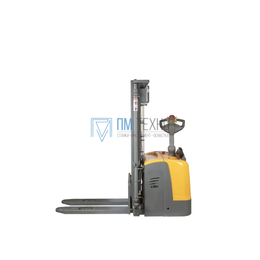 Данный штабелёр работает от электричества не только на подъём, но и на передвижение в горизонтальной плоскости. Обладает лёгким и удобным управлением, высокой манёвренностью. Оснащён электромагнитным тормозом. Для обеспечения устойчивости штабелера при подъеме груза на большую высоту данная модель оснащена специальными дополнительными выдвижными упорами, которые могут быть убраны при транспортировке груза в нижнем положении вил.