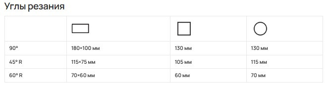 - Угол пропила регулируется в пределах от 0° до 60° при фиксированном положении обрабатываемого материала;