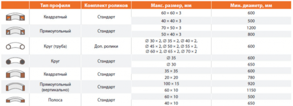 - Максимальный размер труб - 60х60х3, 70х50х3, 80х40х3 мм.