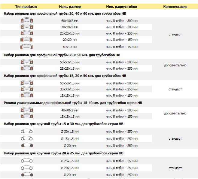 Закаленные ролики из конструкционной углеродистой качественной стали 45. Твёрдость закалки металла – около 40HRC. Прижим обеспечивает гидравлический домкрат грузоподъемностью 5 тонн. Прижимные быстросъемные ролики перемещаются горизонтально для гибки на любой радиус, а также для работы с малыми заготовками. Толщина стенки профильной и круглой трубы 1.5-2 мм. Профильная труба – макс. размер 60х40мм, круглая труба – макс. размер Ø30мм, квадрат - все размеры до 20мм, круг – все размеры до 20мм.