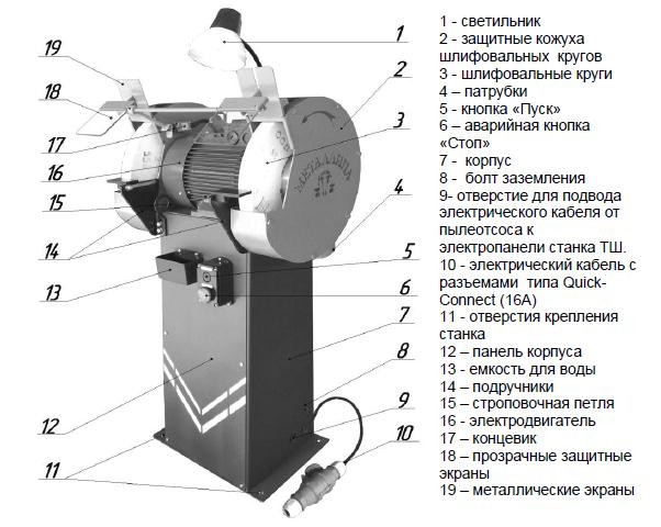 Напольные точильно-шлифовальные станки моделей ТШ-3Р, ТШ-3РБ, ТШ-3Р-П, ТШ-3РБ-П, предназначены для выполнения: