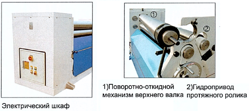 Выносная педаль дублируется пультом управления на станине станка. Цепная передача передаёт вращение с электродвигателя на валы. Верхний вал откидной, для легкого снятия готовых изделий. Откидной вал оснащен замком для предотвращения его самопроизвольного раскрытия в процессе работы.