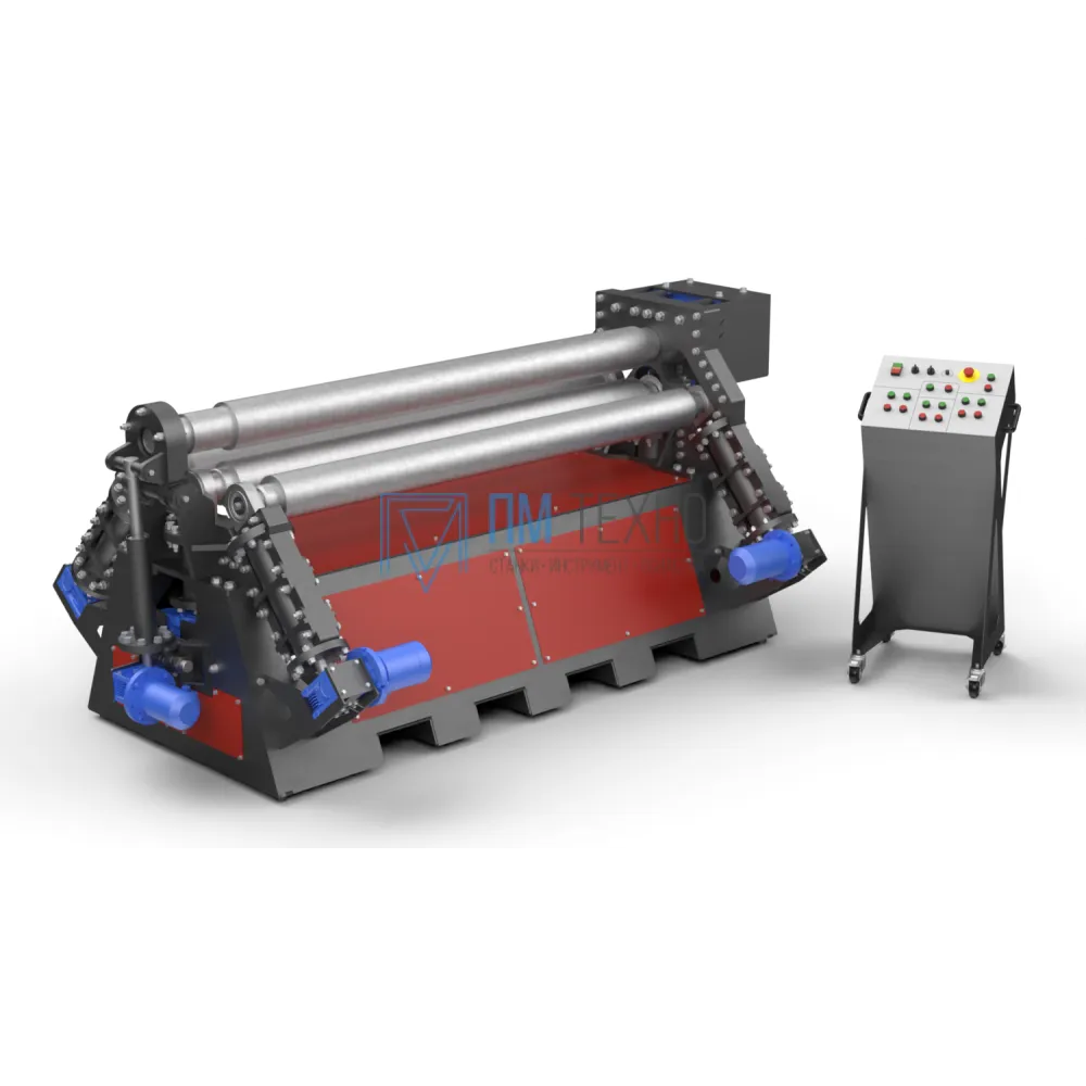•Для более точного проката обечайки и возможности проката конусной заготовки предусмотрена асинхронная регулировка положения боковых и нижний валов